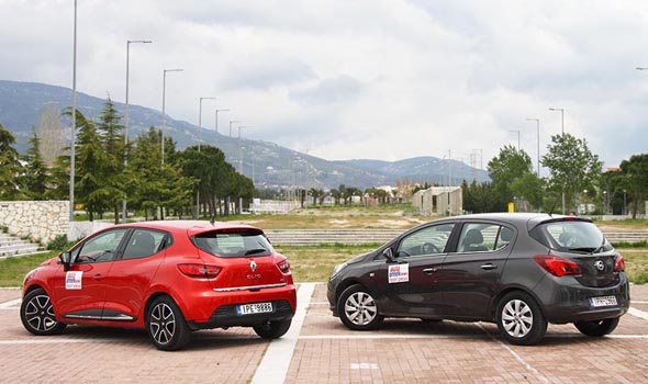 Το Clio είναι από τα πιο ολοκληρωμένα μικρά αυτοκίνητα σε επίπεδο οδικής συμπεριφοράς, αφού καταφέρνει και συνδυάζει με επιτυχία και ισορροπημένο τρόπο το τρίπτυχο κράτημα – άνεση – αίσθηση. Η ανάρτηση φιλτράρει αποτελεσματικά τις διάφορες ανωμαλίες των δρόμων, διατηρώντας παράλληλα τις κλίσεις του αμαξώματος στις στροφές σε λογικά πλαίσια. Ακόμα και υπό έντονη πίεση, το νέο Clio παραμένει πεισματικά στην πορεία του με ελεγχόμενη τάση υποστροφής, ενώ ο οδηγός λαμβάνει καλή αίσθηση από το τιμόνι. Το νέο Corsa είναι ουδέτερο και παρουσιάζεται αισθητά πιο άνετο από το παρελθόν, όμως εμφανίζει πιο έντονες κλίσεις στις στροφές από το Clio. Παράλληλα το τιμόνι δεν παρέχει καλή πληροφόρηση και ο επιλογέας των ταχυτήτων είναι ασαφής σε κούμπωμα, στοιχεία που θα «ξενίσουν» τον οδηγό που θα θελήσει να κινηθεί σβέλτα.