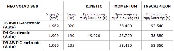 Αναλυτικότερα, οι προτεινόμενες τιμές λιανικής για τις διαθέσιμες σήμερα εκδόσεις για το νέο S90 έχουν ως εξής: