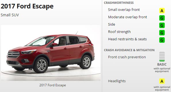Το Ford Escape (Kuga για τη Ευρώπη) βελτιώθηκε σε παθητική ασφάλεια και σύμφωνα με τις νέες δοκιμές του αμερικάνικου ινστιτούτου IIHS αξιολογήθηκε από “μέτριο” σε “αποδεκτό” στο crash test μικρής κάλυψης μετωπικής επιφάνειας. Η Ford ενίσχυσε το πλαίσιο της πόρτας του οδηγού και τη δομή στον χώρο του κινητήρα.