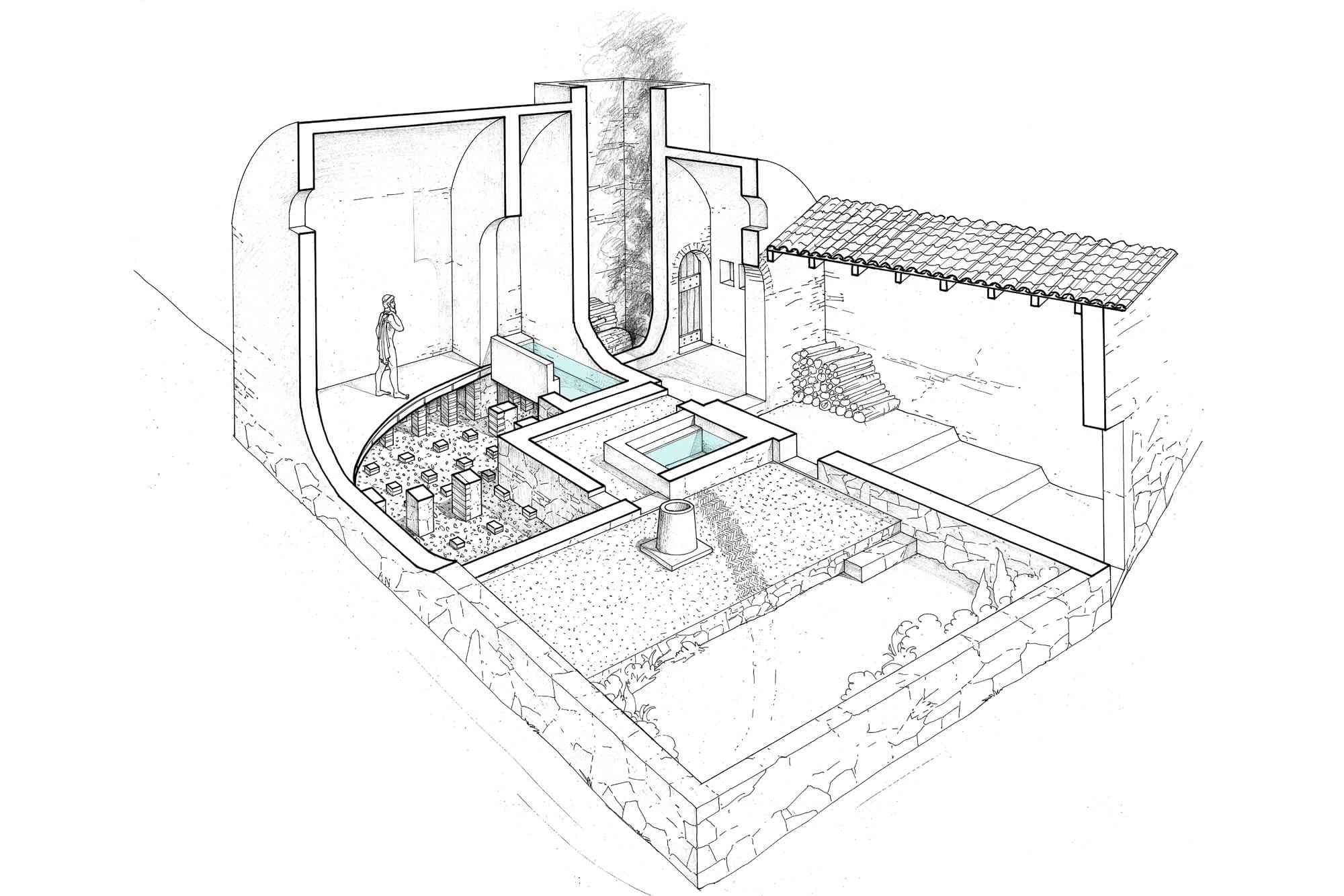 Με την είσοδό τους στο λουτρό οι επισκέπτες άφηναν τα ρούχα τους στο αποδυτήριο, διέσχιζαν το ψυχρό διαμέρισμα και περνούσαν στις θερμές αίθουσες. Πρώτα στην χλιαρή, για την προσαρμογή του σώματος στη θερμότητα και κατόπιν στη θερμή, για το ατμόλουτρο και το ζεστό μπάνιο στον λουτήρα.