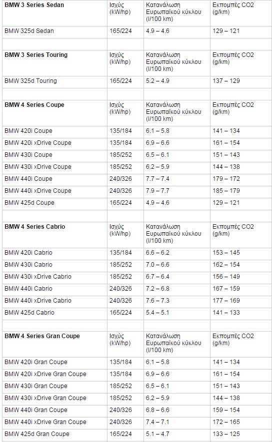 Όλες τις νέες εκδόσεις της BMWΣειρά 3 και Σειρά 4 είναι οι εξής παρακάτω: