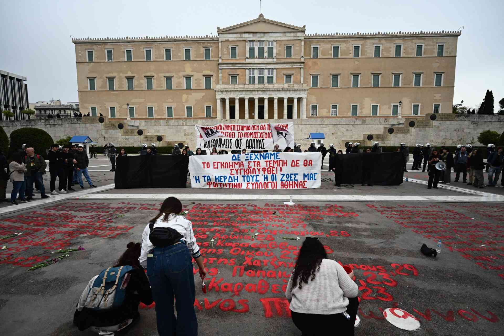 Έγραψαν ξανά τα ονόματα των 57 θυμάτων στα Τέμπη μπροστά από τη Βουλή (ΦΩΤΟ + VIDEO)