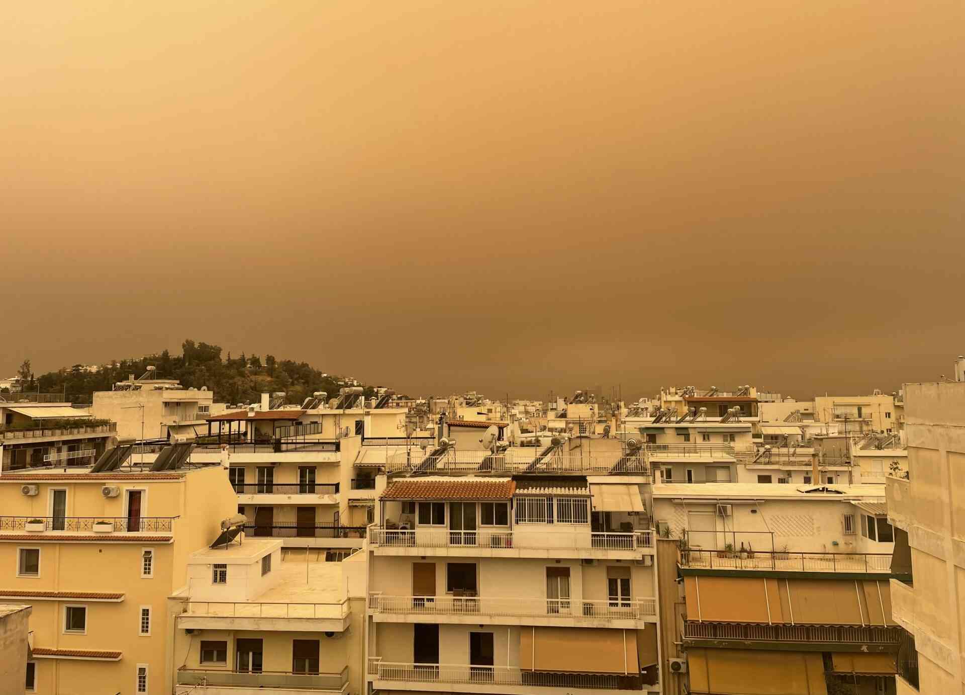 «Πνίγηκε» ο Αττικός ουρανός από τη σκόνη | Απόκοσμη η εικόνα της Αθήνας (VIDEO)